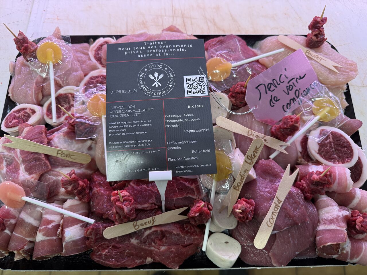 Pour organiser vos Party Planchas/pierrades avec nos viandes préparées sur place par notre boucher !