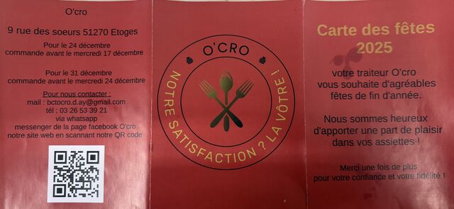 Bienvenue O'CRO , situé dans la belle ville de ETOGES . Nous avons hâte de vous accueillir en tant que client ! Vous y retrouvez un rayon boucherie et un rayon charcuterie travaillé par notre boucher/charcutier/traiteur.